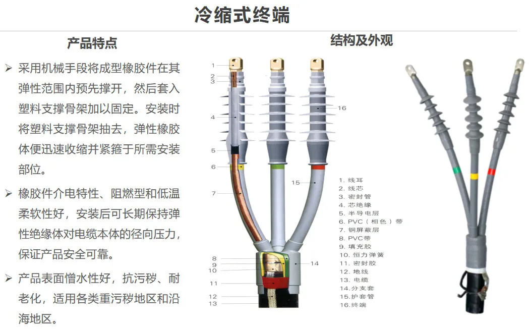 上述部件和材料須經過現(xiàn)場安裝在電纜上,即構成了完整的電纜附件。
