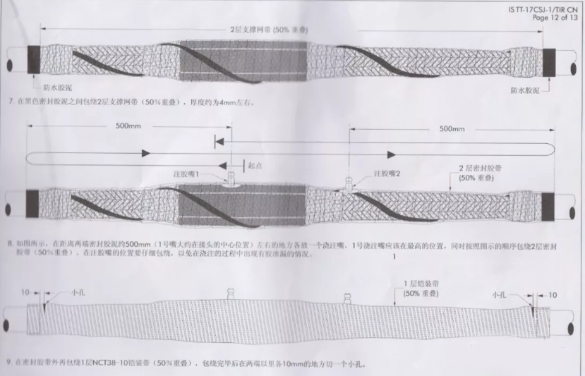 3)可根據(jù)用戶需要,待接頭裝甲帶表面干燥后,可涂刷雙組分防水阻燃樹脂。