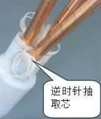 如果端部密封使用冷縮管來實(shí)現(xiàn)的,則分別逆時針拉出芯繩,使密封管收縮于預(yù)定位置。
