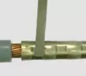 銅編織網(wǎng)套兩邊分別用小恒力彈簧固定,使兩段電纜的銅屏蔽層可靠連通。用剪刀將銅網(wǎng)套的兩端多出部分修剪齊整,并在恒力彈簧外繞包PVC膠帶或其他膠帶。