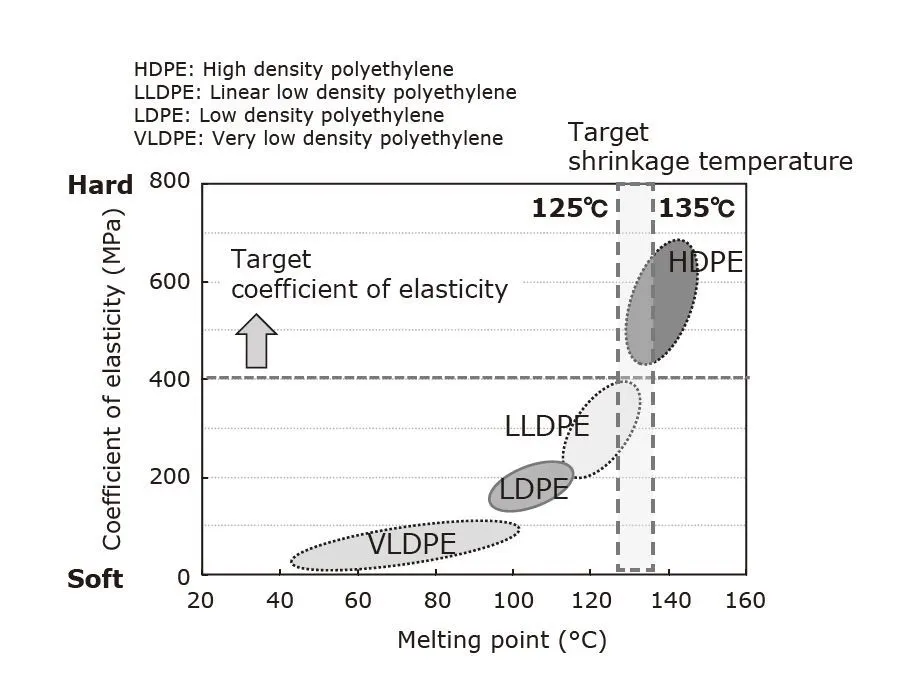 圖4.各種聚乙烯的熔點和彈性系數(shù)