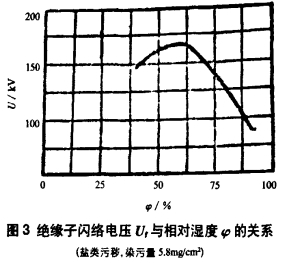 電纜分支箱地處交通要道,背靠山坡,面向公路,塵土很大,絕緣子表面的積塵較多,在污層受潮時(shí)。其間所含可溶性鹽類及酸堿成分溶解于水中,使表面電導(dǎo)率驟增,泄露電流許多增加,大大下降閃絡(luò)電壓。一般說來,絕緣子的污閃電壓隨其污染程度的增加而下降。污染嚴(yán)峻時(shí),跟著污染程度繼續(xù)增加,污閃電壓的下降已很緩慢,但這時(shí)污閃電壓常常現(xiàn)已低于作業(yè)電壓了。單調(diào)污穢的電阻較大,它并不下降絕緣子的閃絡(luò)電壓,一般當(dāng)空氣相對(duì)濕度小于50%~70%時(shí),沿面閃絡(luò)電壓不會(huì)下降;高于這數(shù)值時(shí),跟著濕度增加,閃絡(luò)電壓敏捷下降,如圖3所示。實(shí)踐作業(yè)中,絕緣子污閃事故都發(fā)生在霧、露、陰雨連綿等高濕度的氣候.由于在這種條件下、積塵中水深性的鹽類溶解,使污層成為了半導(dǎo)體,大大增加泄露,下降閃絡(luò)電壓。本次事故正值當(dāng)?shù)厍лd一時(shí)的大雨期間,而開關(guān)柜柜體的密封較差,柜內(nèi)相對(duì)濕度已達(dá)90%以上,開關(guān)柜的操作安排安排嚴(yán)峻腐蝕,以至于徹底不能正常操作,由臟污沿面放電的進(jìn)程的評(píng)論可知,污層的電阻越大,泄露電流越小,放電翻開越困難,閃絡(luò)電壓也相應(yīng)行進(jìn)。在相同污染和濕潤(rùn)條件下,介質(zhì)表面形狀、南北極間的沿面最短距離即泄露距離是影響表面電阻和閃絡(luò)電壓的重要要素。泄露距離增加,污閃電壓也增加。不同成都的污穢情況對(duì)線路及變電站絕緣的影響程度是不同的,因而應(yīng)依據(jù)不同的污移情況,選用相應(yīng)的絕緣標(biāo)準(zhǔn)保證電網(wǎng)安全作業(yè)"。現(xiàn)在,我們用泄露比距來估計(jì)臟污條件下絕緣子的耐污功用。由于我局所轄電網(wǎng)為渝中區(qū),被定為三級(jí)污區(qū),按變電站設(shè)備考慮泄瀾比距應(yīng)大于4cm/MkV。