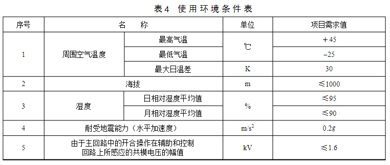 4使用環(huán)境條件表0.4kV低壓電纜分支箱使用環(huán)境條件見表4。特殊環(huán)境要求根據(jù)項(xiàng)目情況進(jìn)行編制。