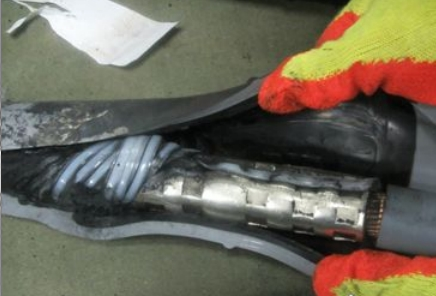 事例:故障電纜中心接頭杰出相電纜外半導(dǎo)電層
