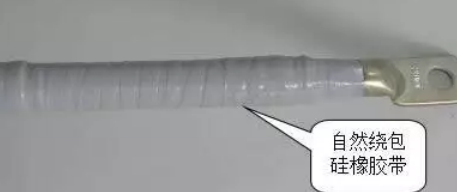 從終端管開始,半重疊繞包硅橡膠帶至接線端子上,再返回繞包一層。繞包硅橡膠帶時無需用力拉伸,自然繞包即可。