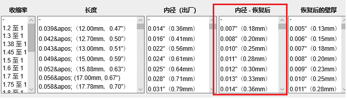 列如,TE的RNF-100系列熱縮套管的出廠內(nèi)徑是1.0”,恢復(fù)后內(nèi)徑是0.5”。那適合的應(yīng)用物體直徑范圍如下: